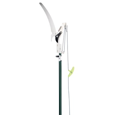 The other feature of the pruner is the fixed pulley bypass that offers a 1-1/4-inch side cut capacity. For enhanced efficiency and performance, the pruner also has a 6-foot base pole, a saw head, a pole adapter, and a 20-foot rope.